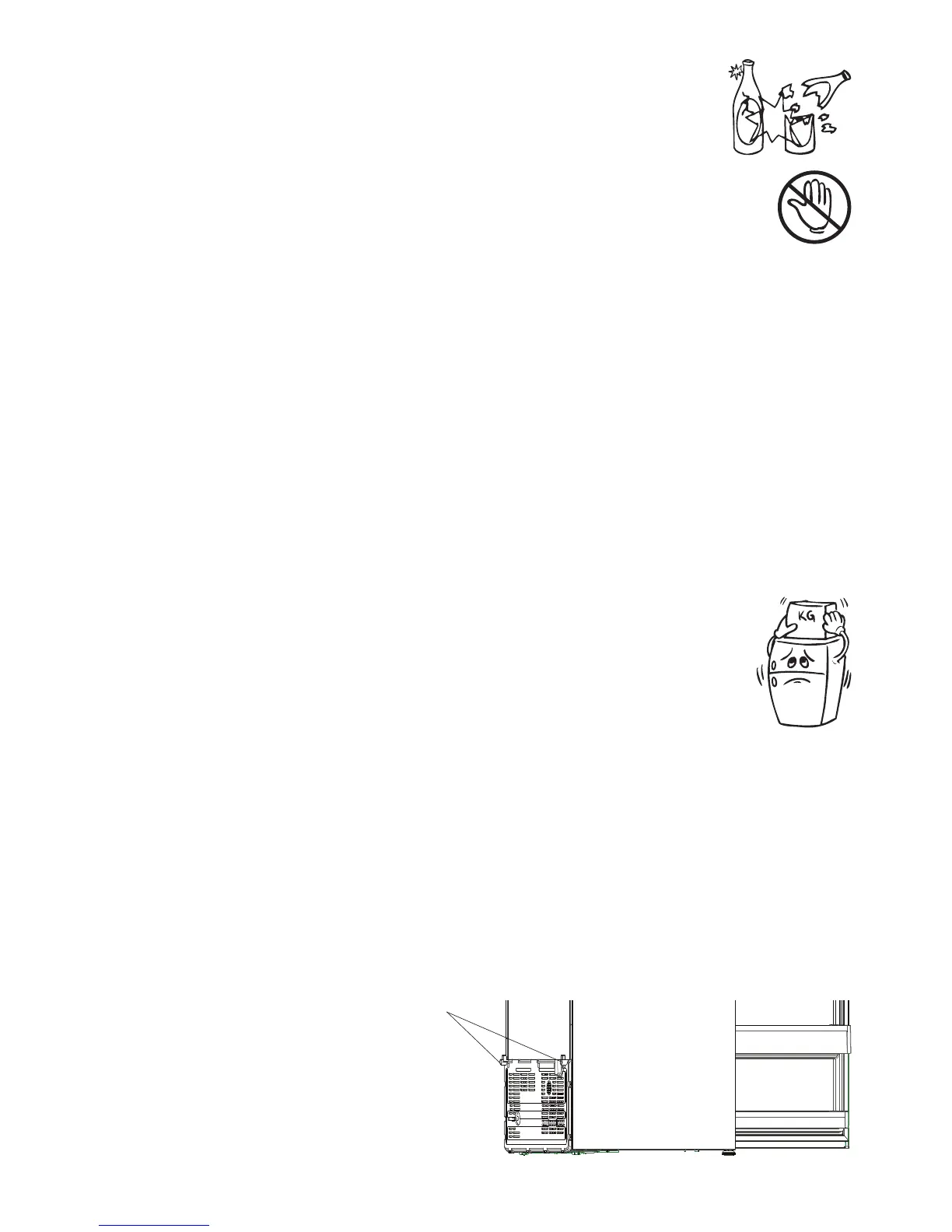 • Do not place anything on your fridge, and install your fridge in a suitable