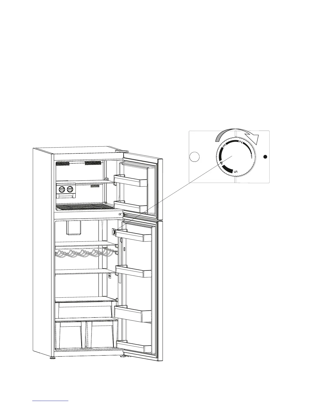1 – 2 : Impostare la manopola tra la posizione minima e media per conservare il cibo a