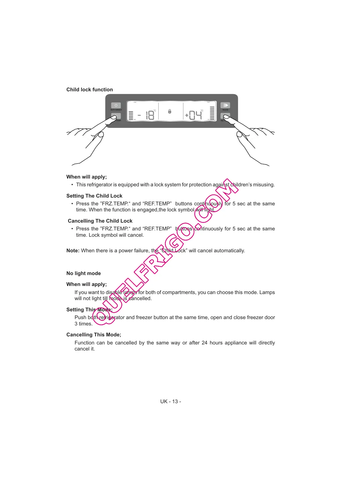 Note: When there is a power failure, the “Child Lock” will cancel automatically.