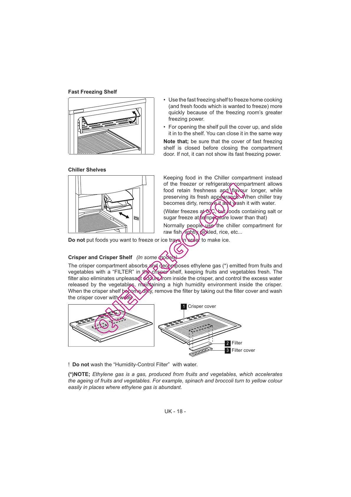 vegetables with a “FILTER” in the crisper shelf, keeping fruits and vegetables fresh. The