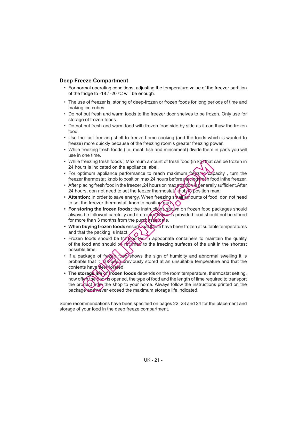 For storing the frozen foods; the instructions shown on frozen food packages should