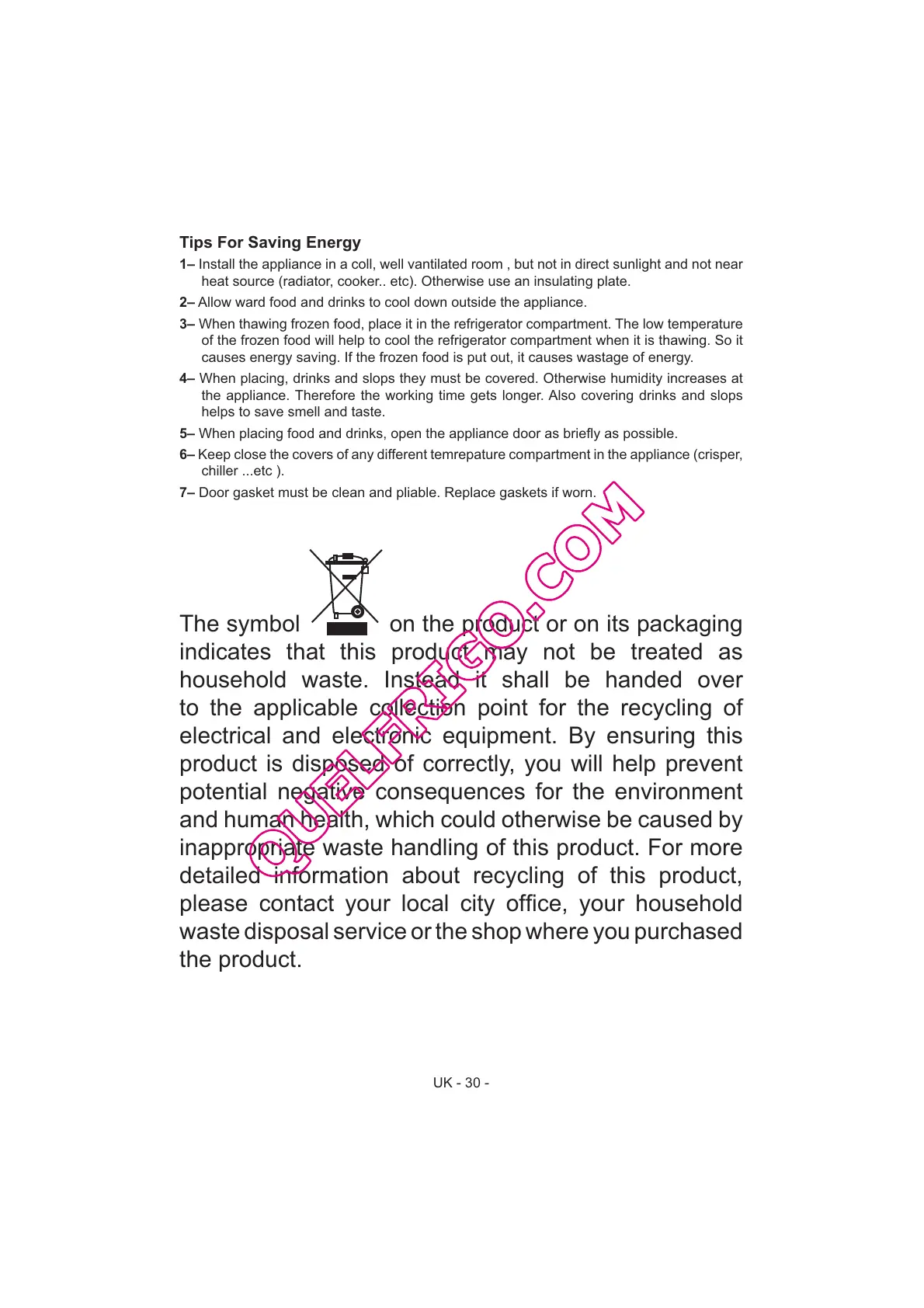 6– Keep close the covers of any different temrepature compartment in the appliance (crisper,