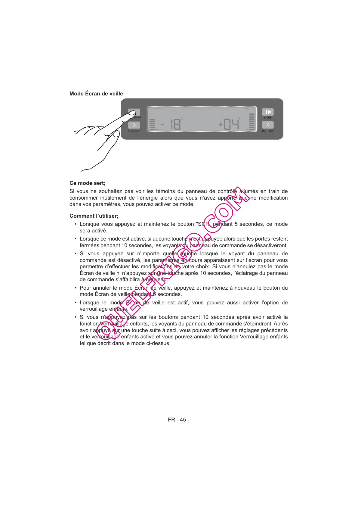 Lorsque vous appuyez et maintenez le bouton "SCR. pendant 5 secondes, ce mode