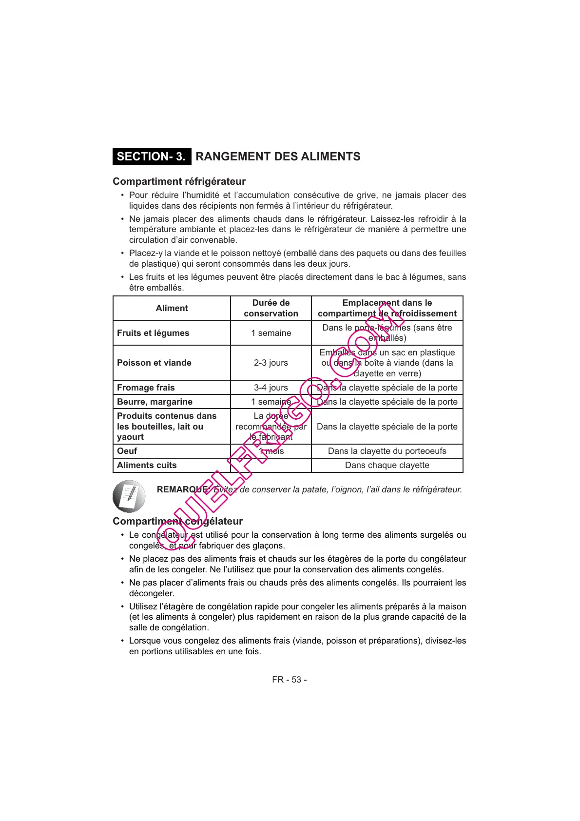 REMARQUE: Évitez de conserver la patate, l’oignon, l’ail dans le réfrigérateur.
