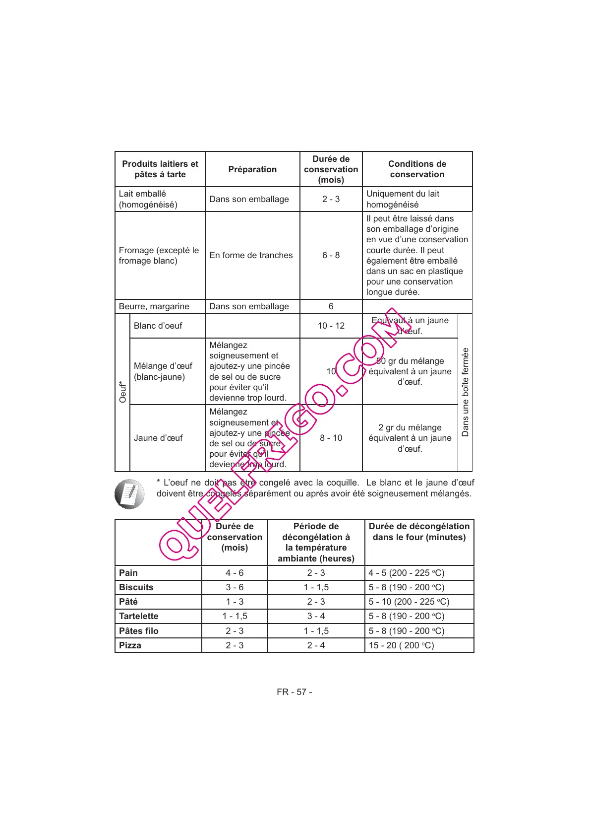 * L’oeuf ne doit pas être congelé avec la coquille. Le blanc et le jaune d’œuf