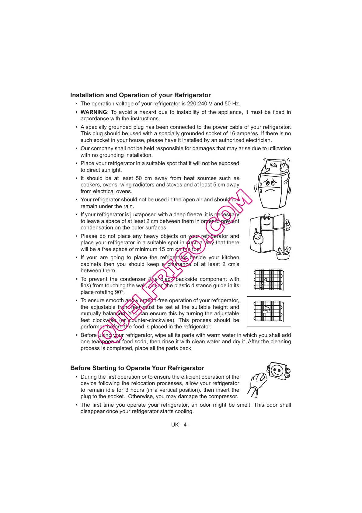 Before using your refrigerator, wipe all its parts with warm water in which you shall add