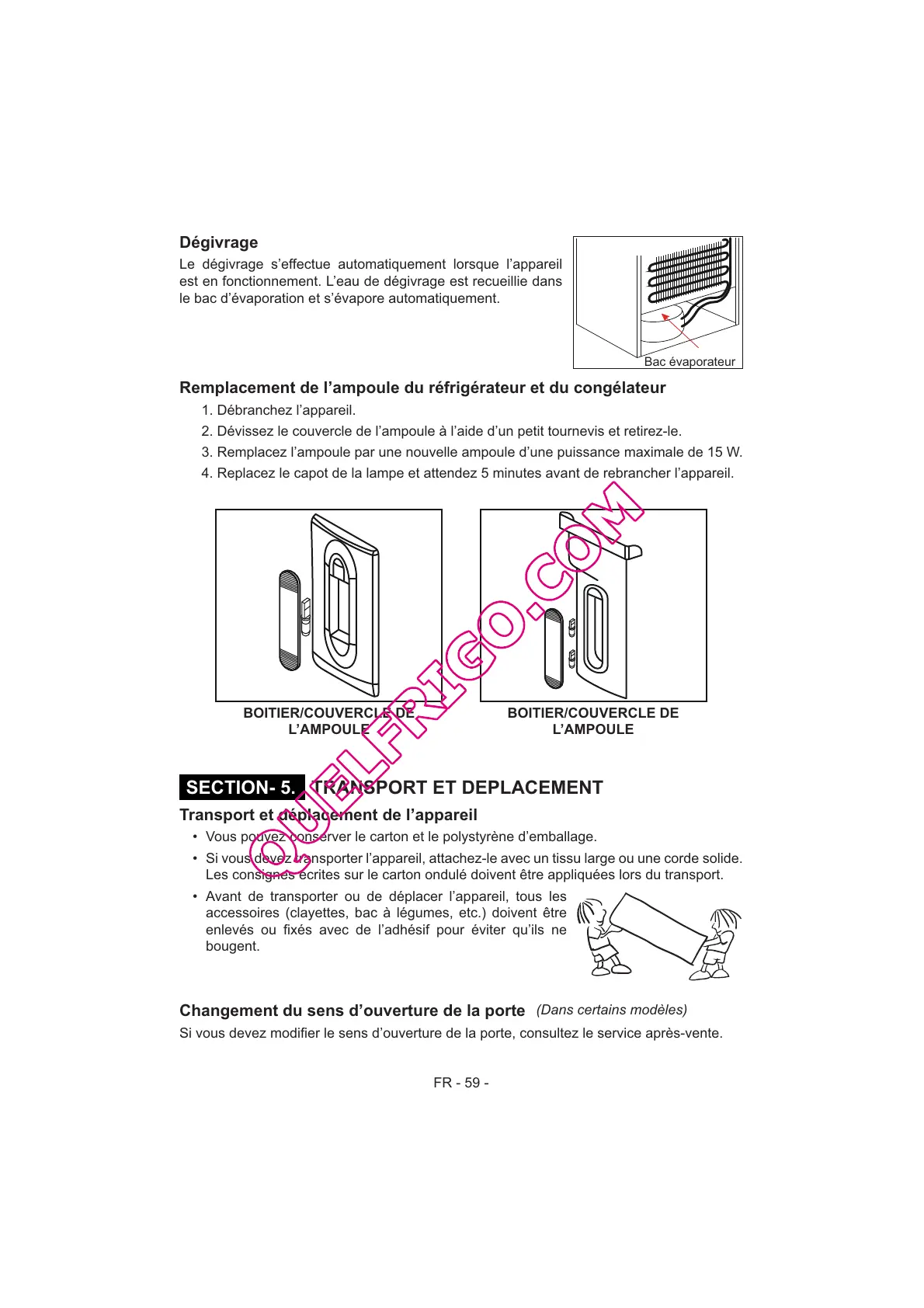 Remplacement de l’ampoule du réfrigérateur et du congélateur