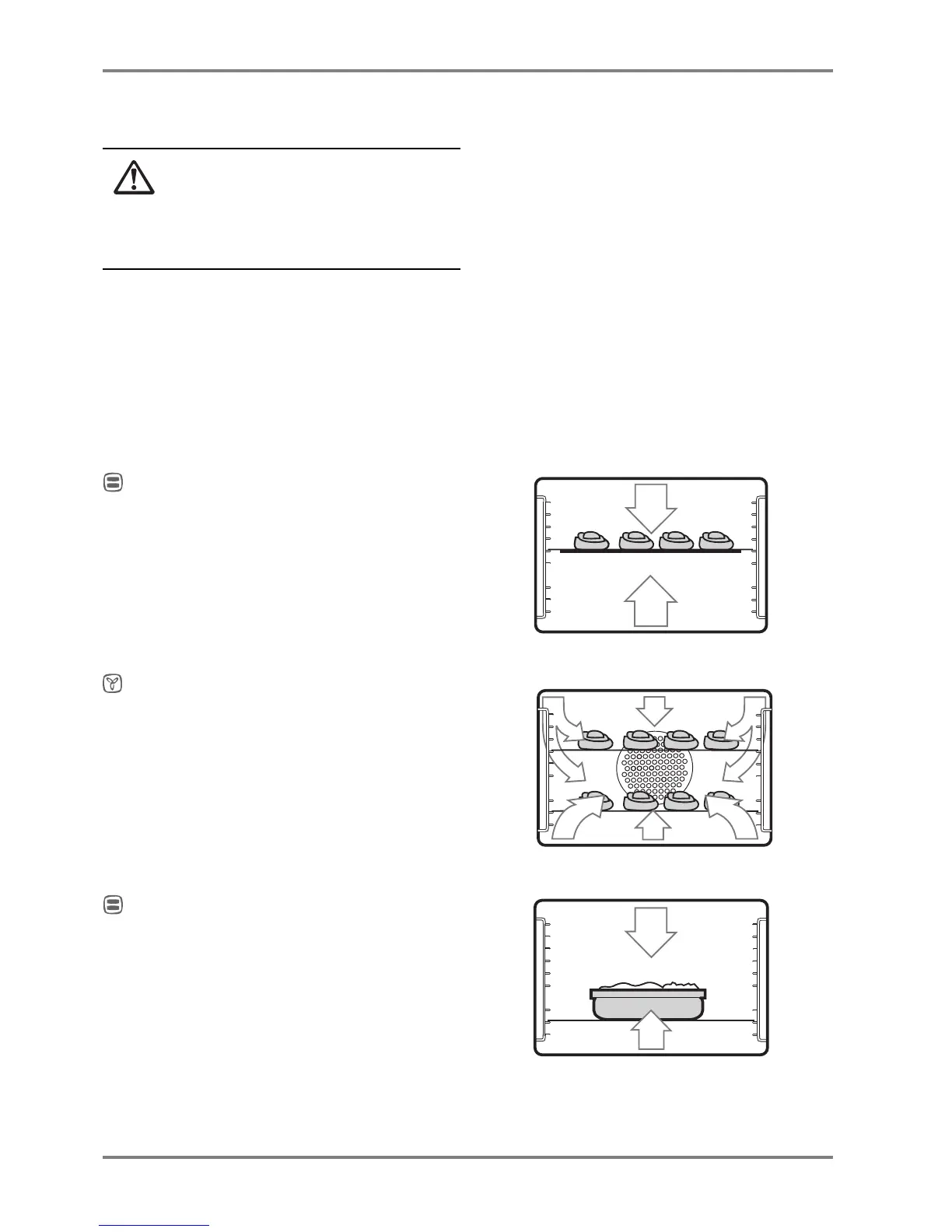 Never place aluminium foil, baking trays or oven