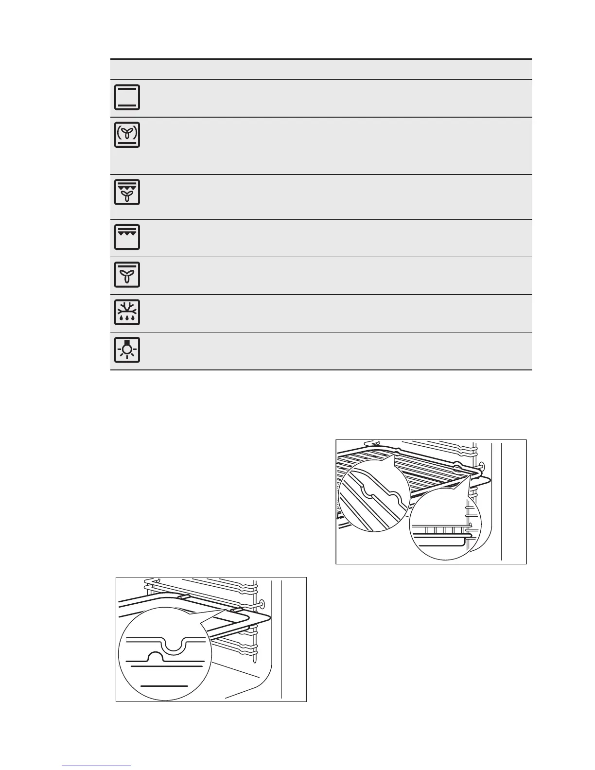 Ober-/Unterhitze Zum Backen und Braten auf einer Einschubebene.