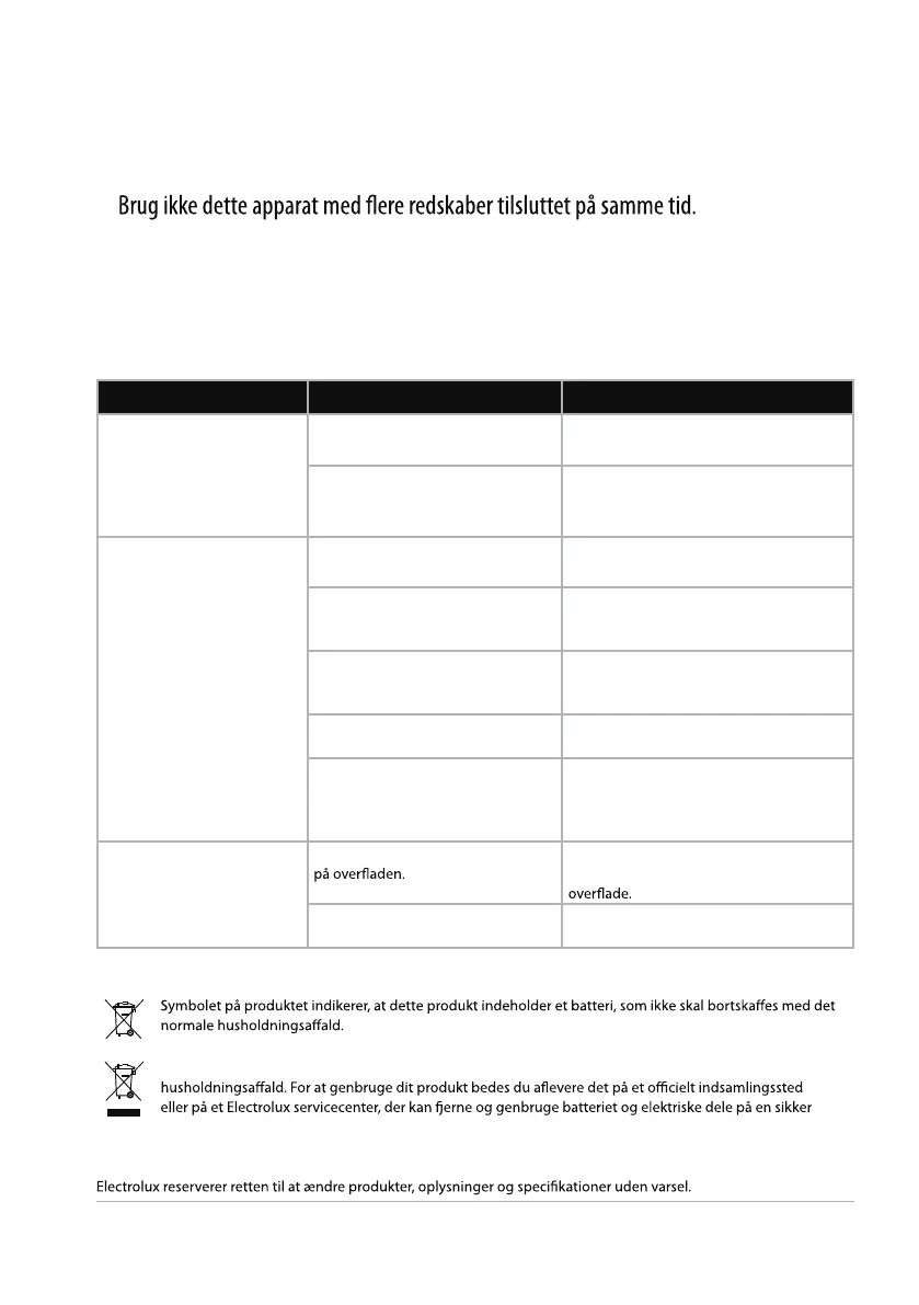 • Sluk for maskinen, og tag stikket ud af kontakten, inden du udskifter tilbehør eller