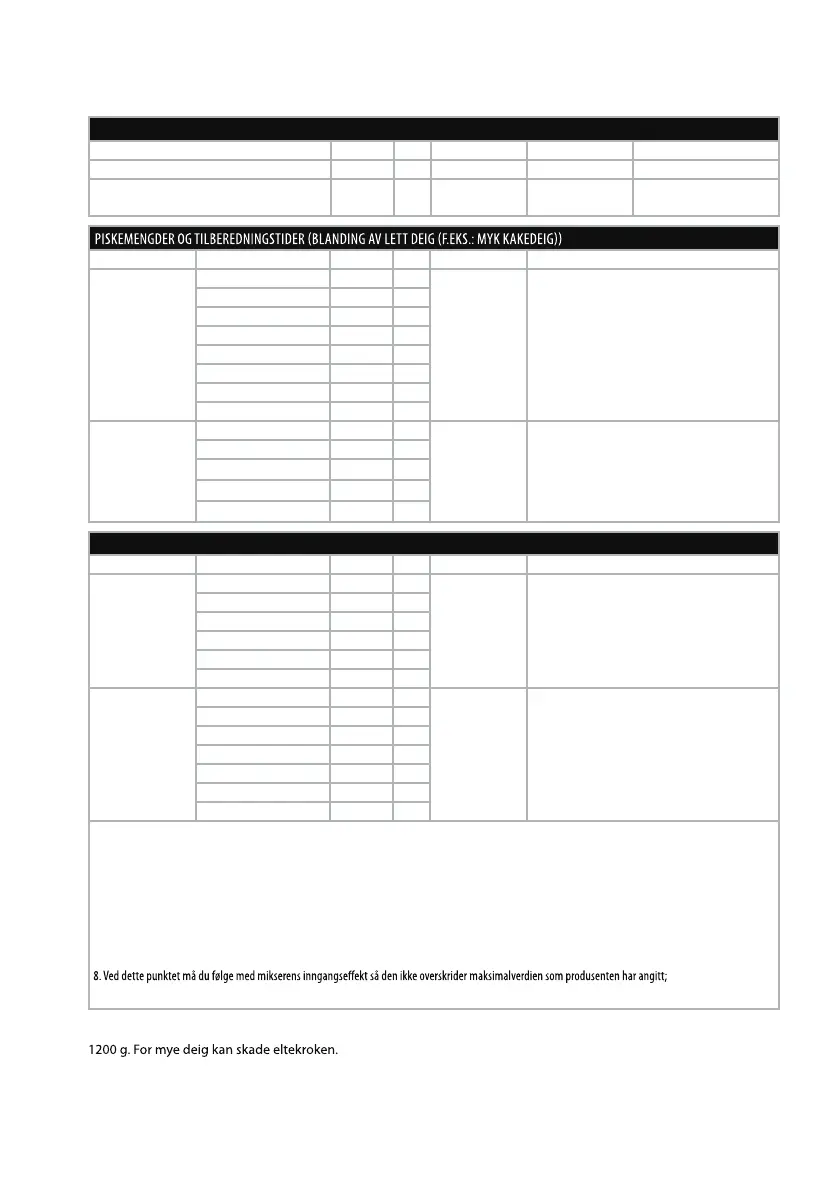 *Ikke overskrid hastighet 2 ved tilberedning av gjærdeig. Dette kan skade kroken. Deigmassen skal ikke overstige