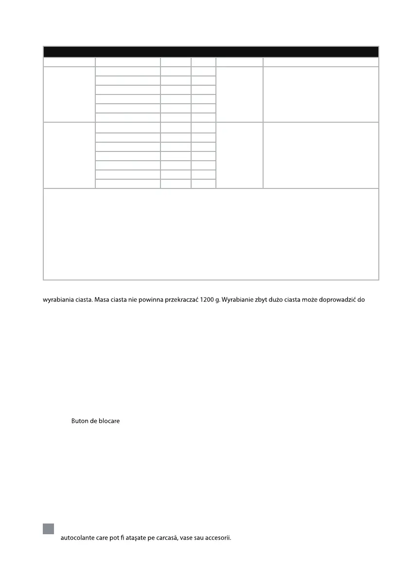 *Podczas wyrabiania ciasta drożdżowego nie należy przekraczać 2. stopnia prędkości. Może to uszkodzić hak do
