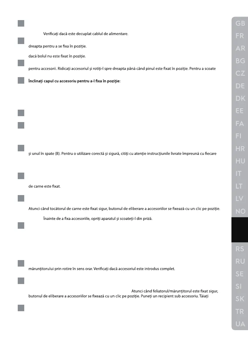 pentru alimente. Conectaţi aparatul la priză şi rotiţi selectorul de viteză la viteza 3-4. Introduceţi carnea în tubul