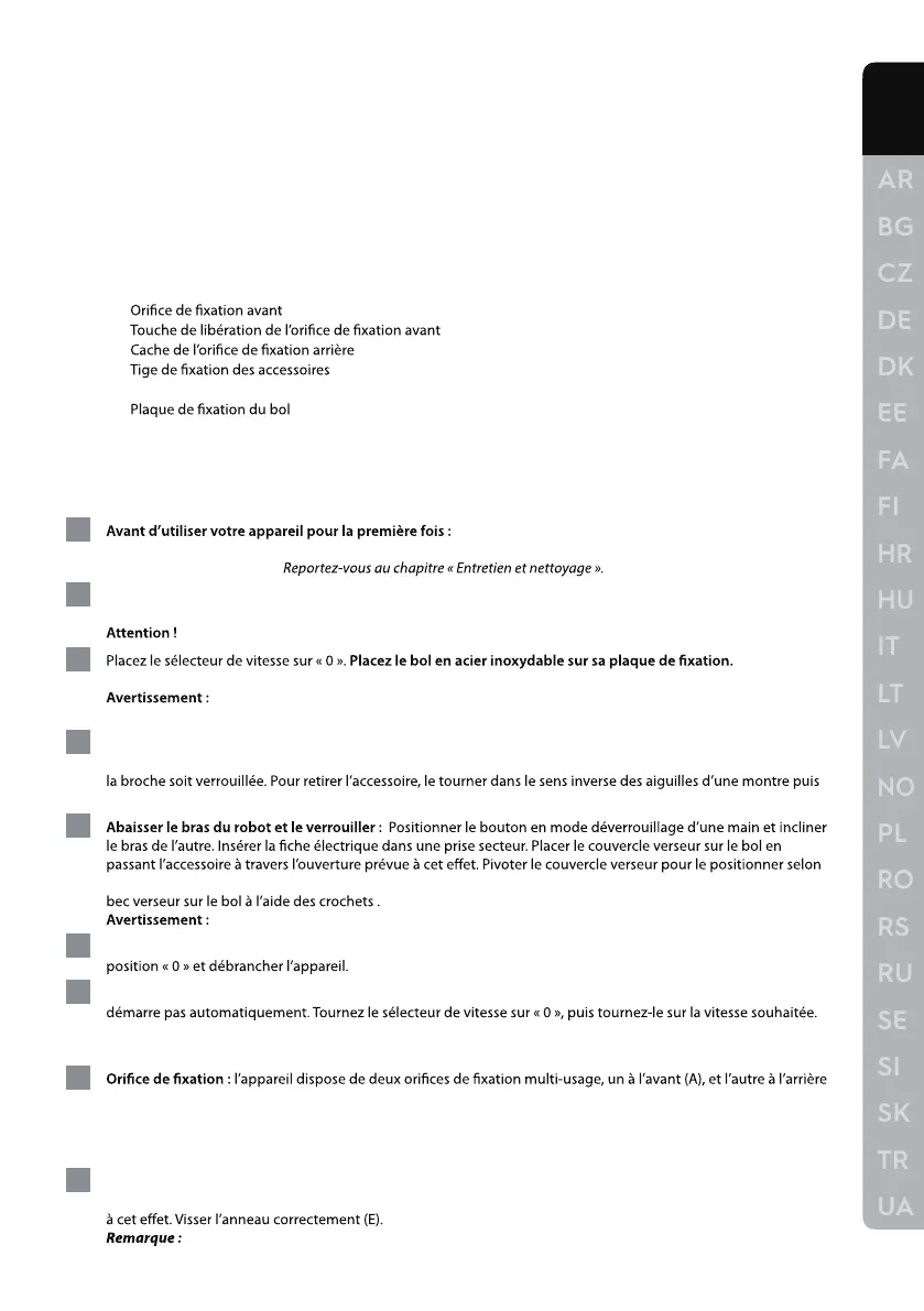 quettes et les autocollants pouvant se trouver sur l’appareil, dans les récipients ou sur les accessoires. Nettoyez