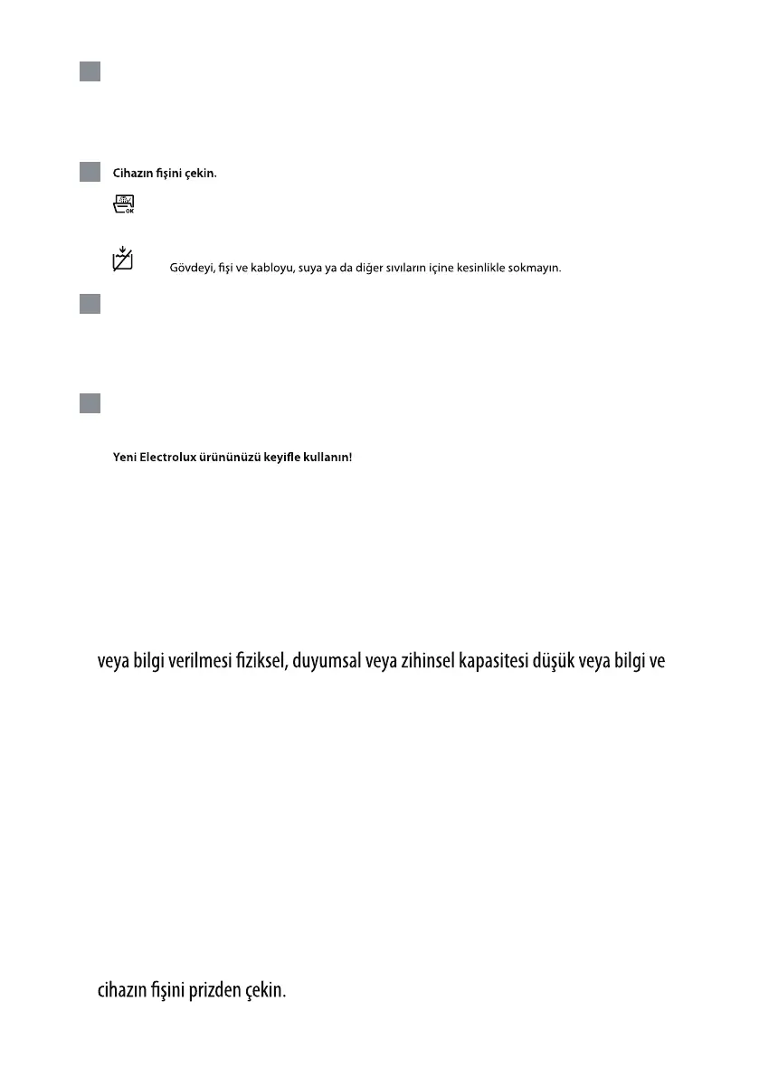 • Gözetimsiz bırakılacaksa ve montaj, demontaj ya da temizlik öncesinde her zaman