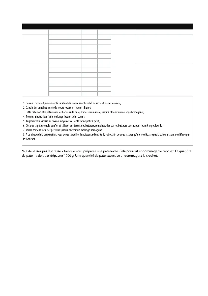 QUANTITÉS À PÉTRIR ET DURÉES DE PÉTRISSAGE