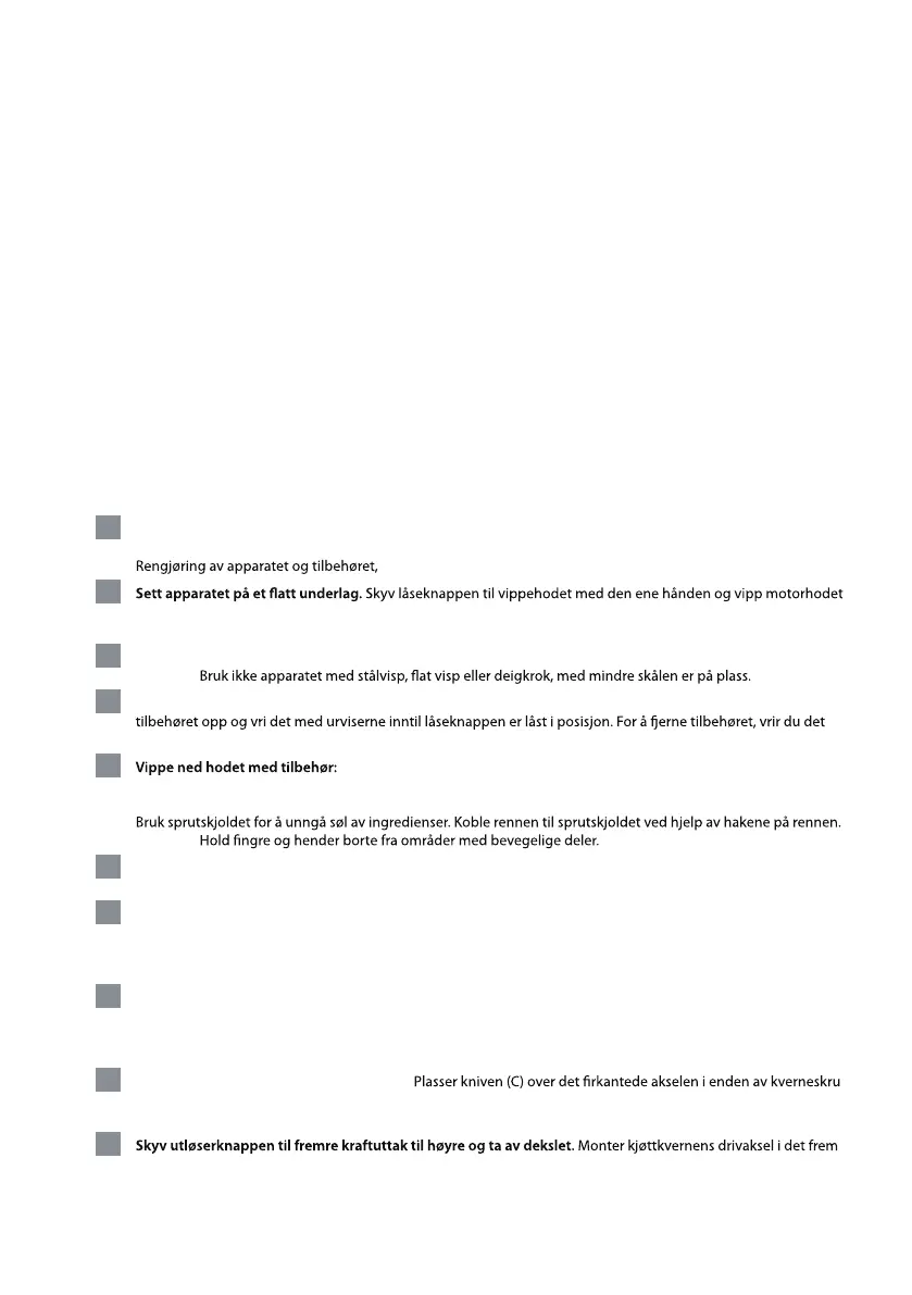 nen er korrekt festet. Sett en beholder under kjøttkvernen.
