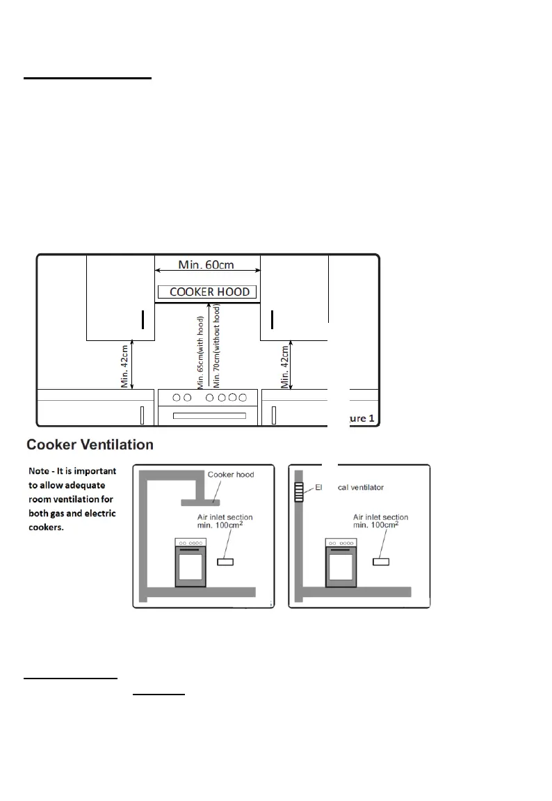 If installing the cooker with a cooker hood ensure there is a minimum of 65cmto