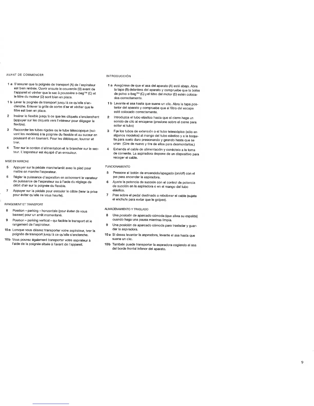 10a Lorsque vous d6slrez transporter votre aspirateur, ttrer la