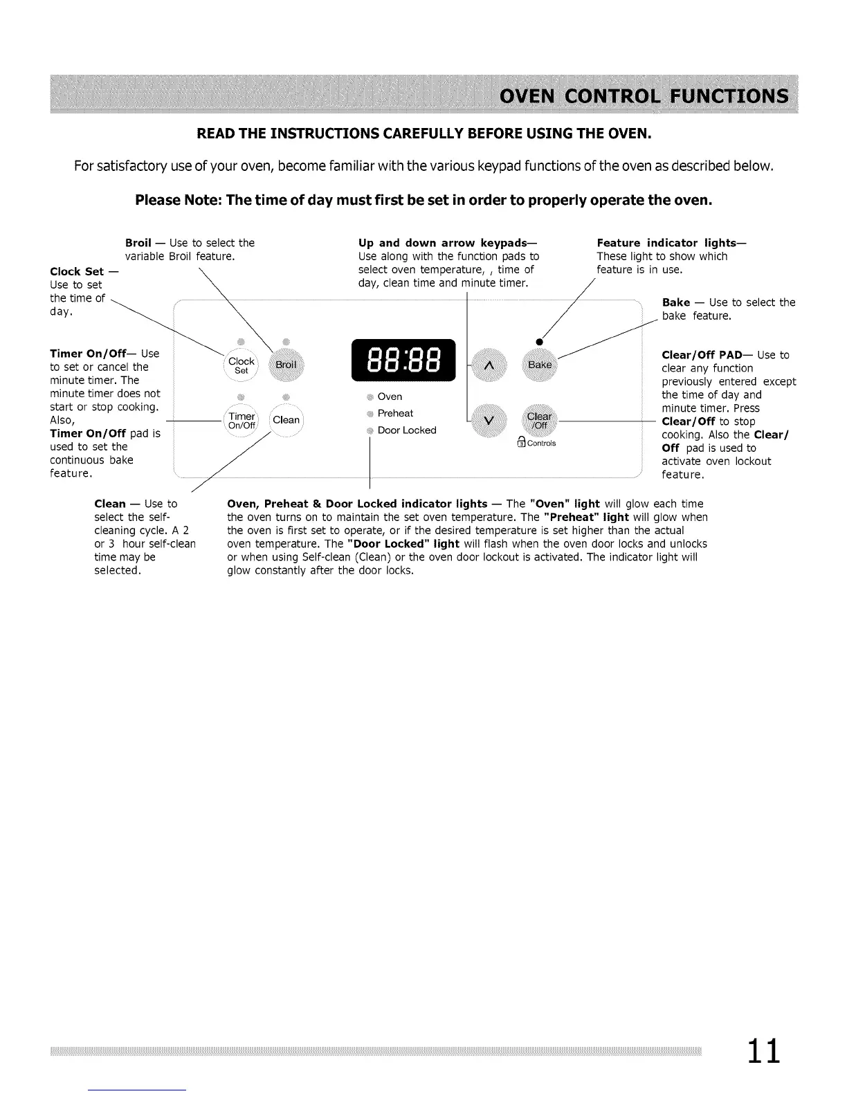 Please Note: The time of day must first be set in order to properly operate the oven.