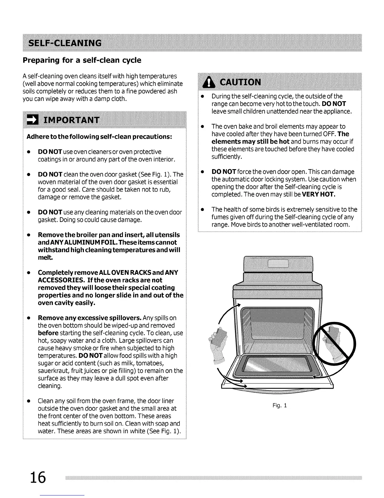 DO NOT clean the oven door gasket (See Fig. 1). The