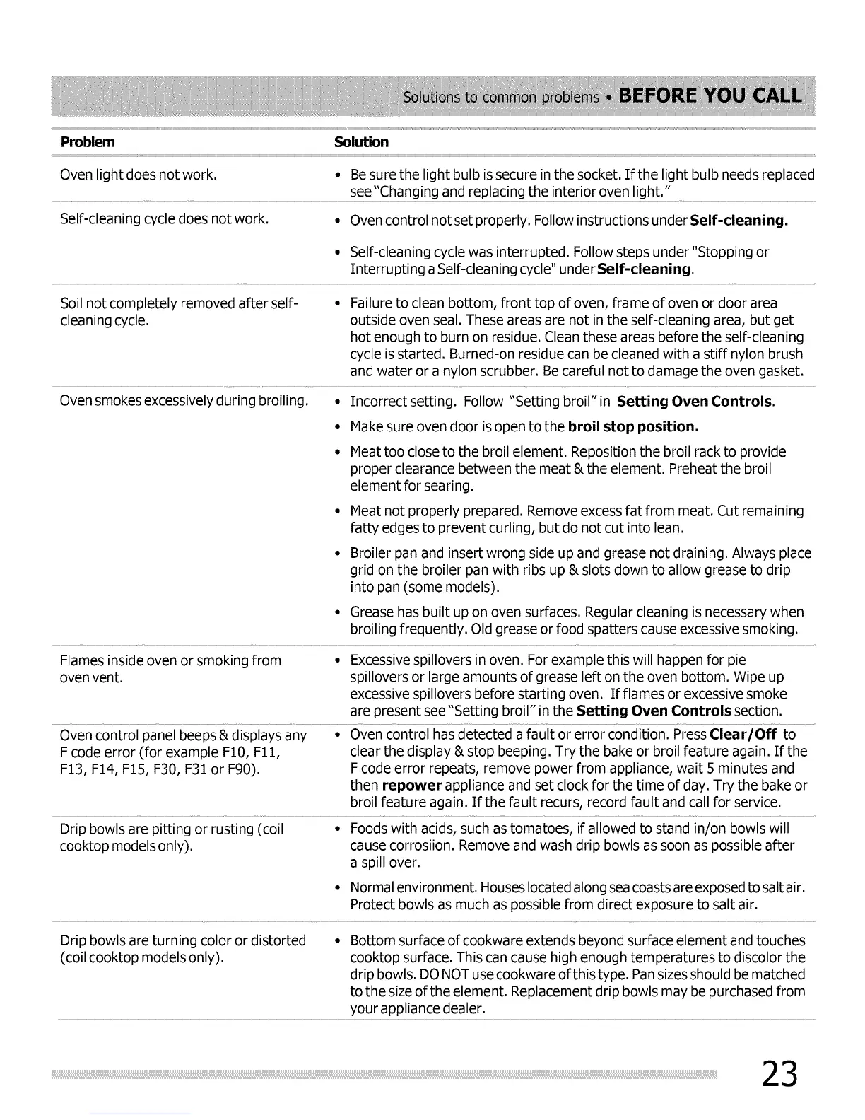 Oven smokes excessively during broiling. ° Incorrect setting. Follow "Setting broil" in Setting Oven Controls.