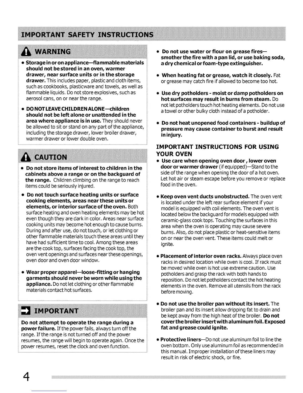 • Storage in or on appliance--flammable materials