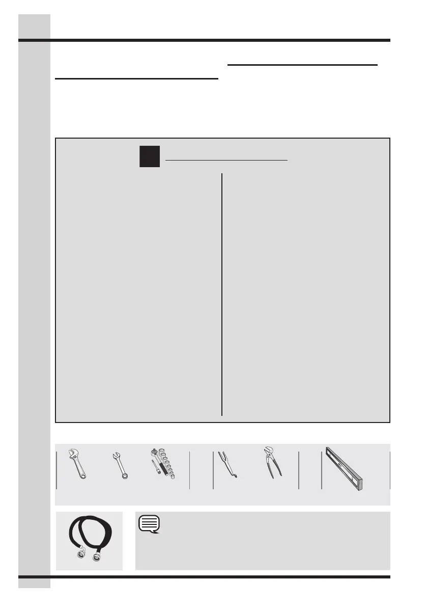 Tools and materials needed for installation: