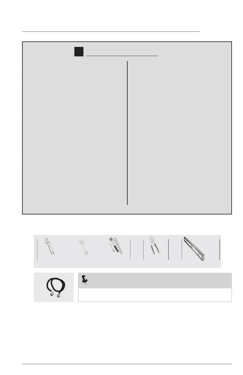 Tools and materials needed for installation: