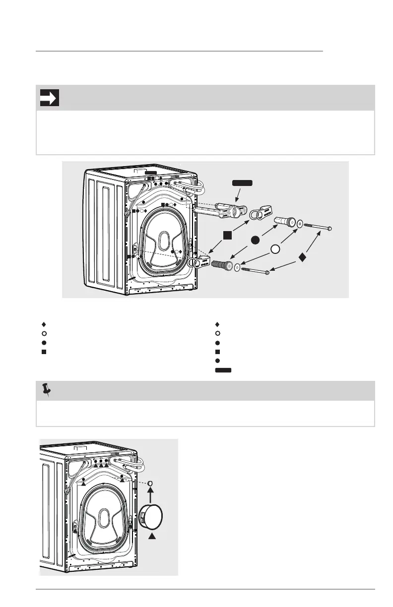 Save all shipping bolts and spacers for future use. If the washer is to be transported at a