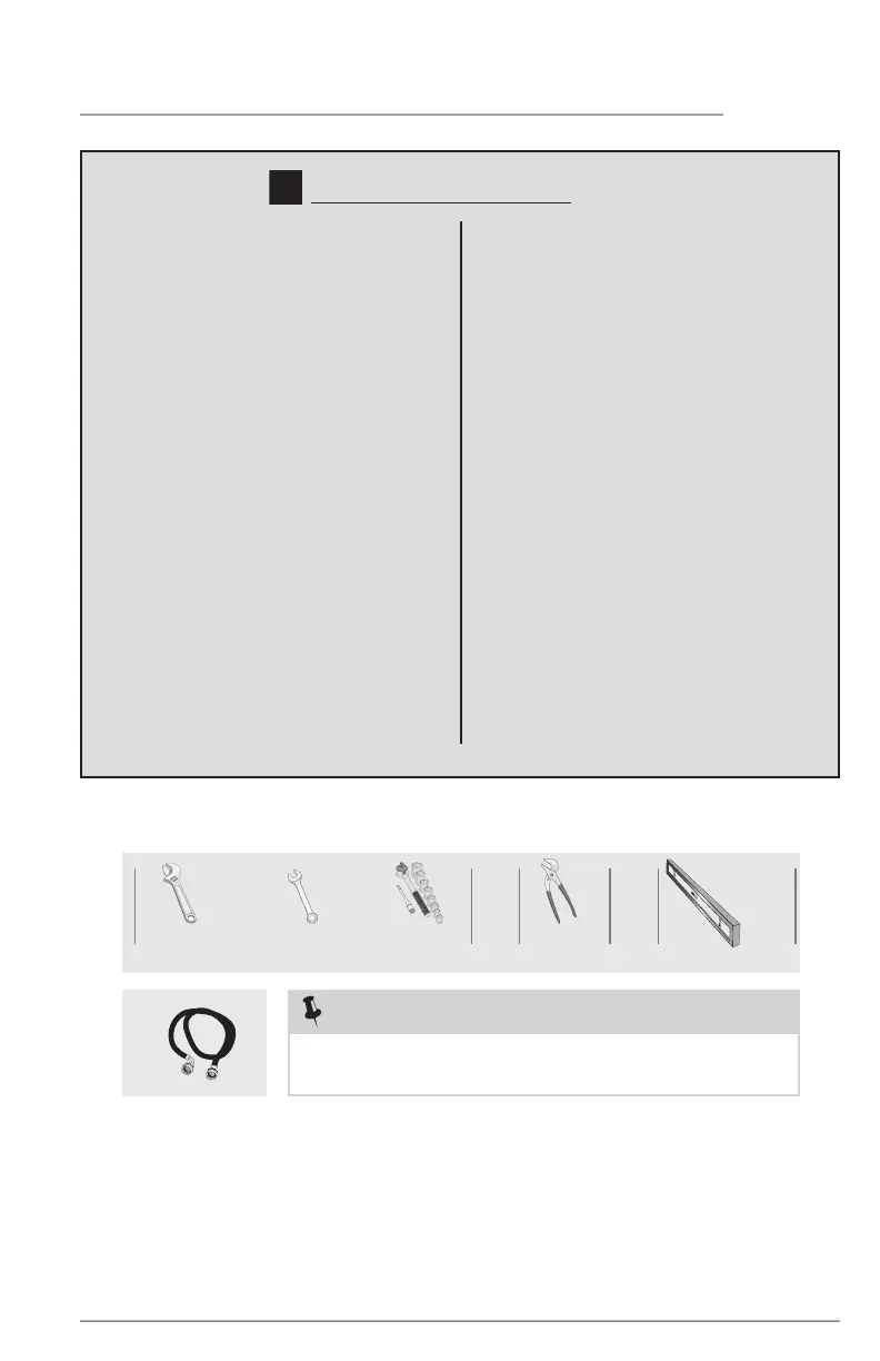 Tools and materials needed for installation: