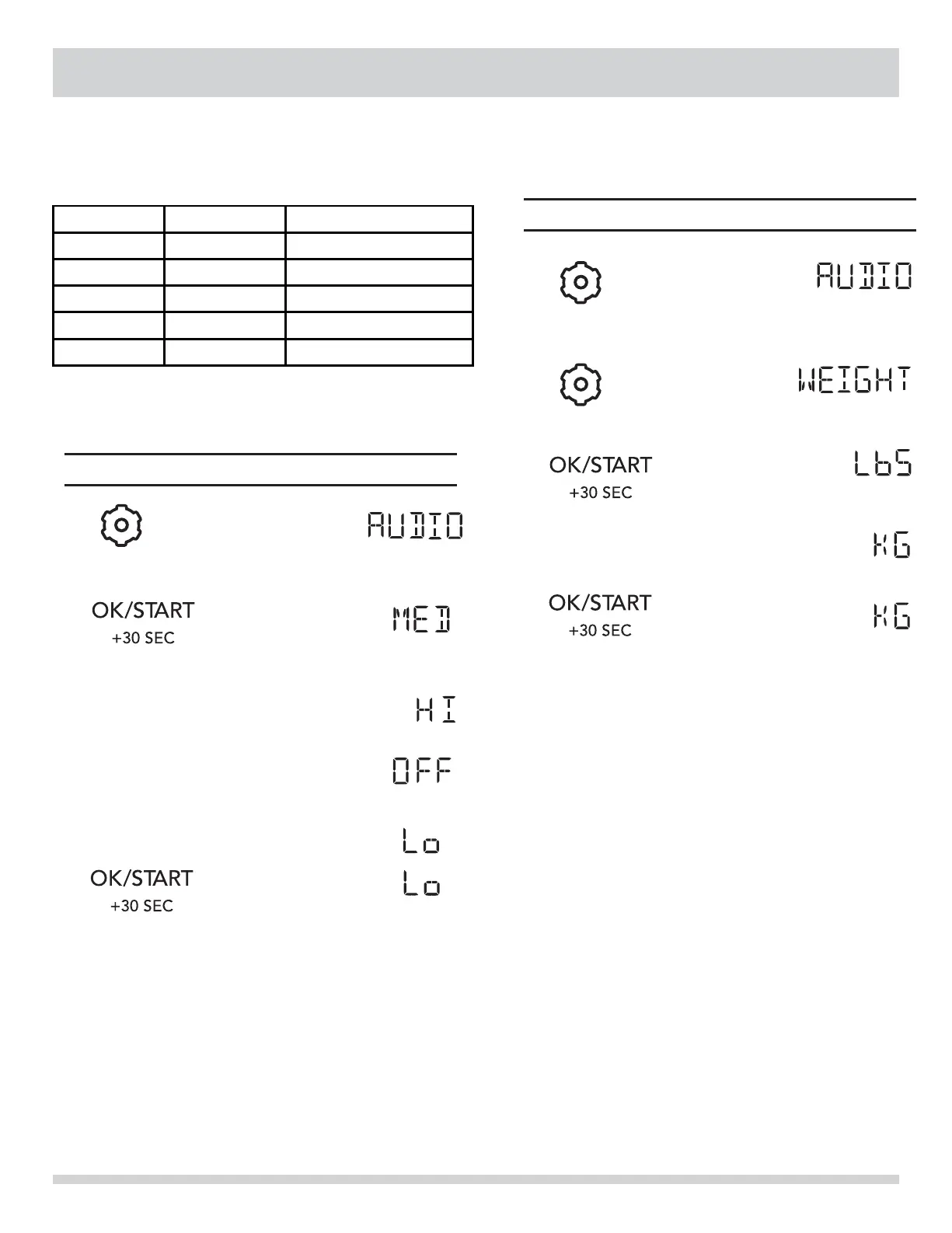 Audio Low / Med / High / OFF