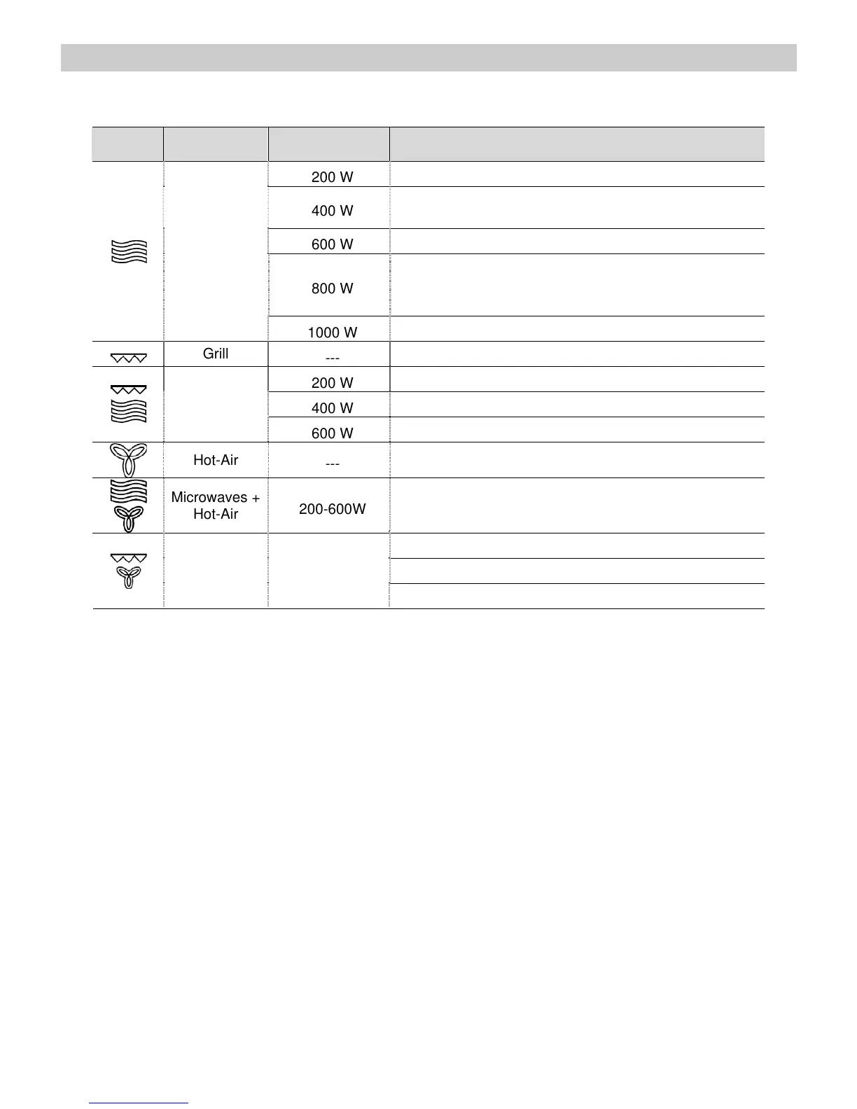 • Microwave output power. ................................................................ 1000 W