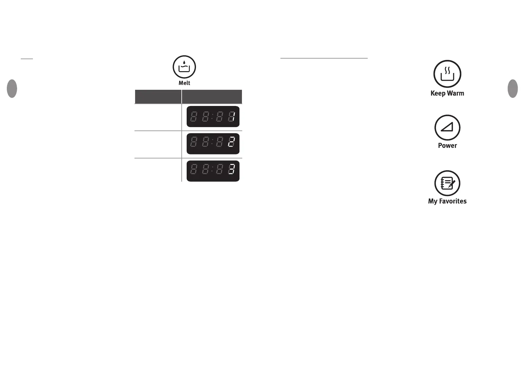 Electrolux EMDN20S5MLG - Melt Function; Keep Warm Function; Memory Function