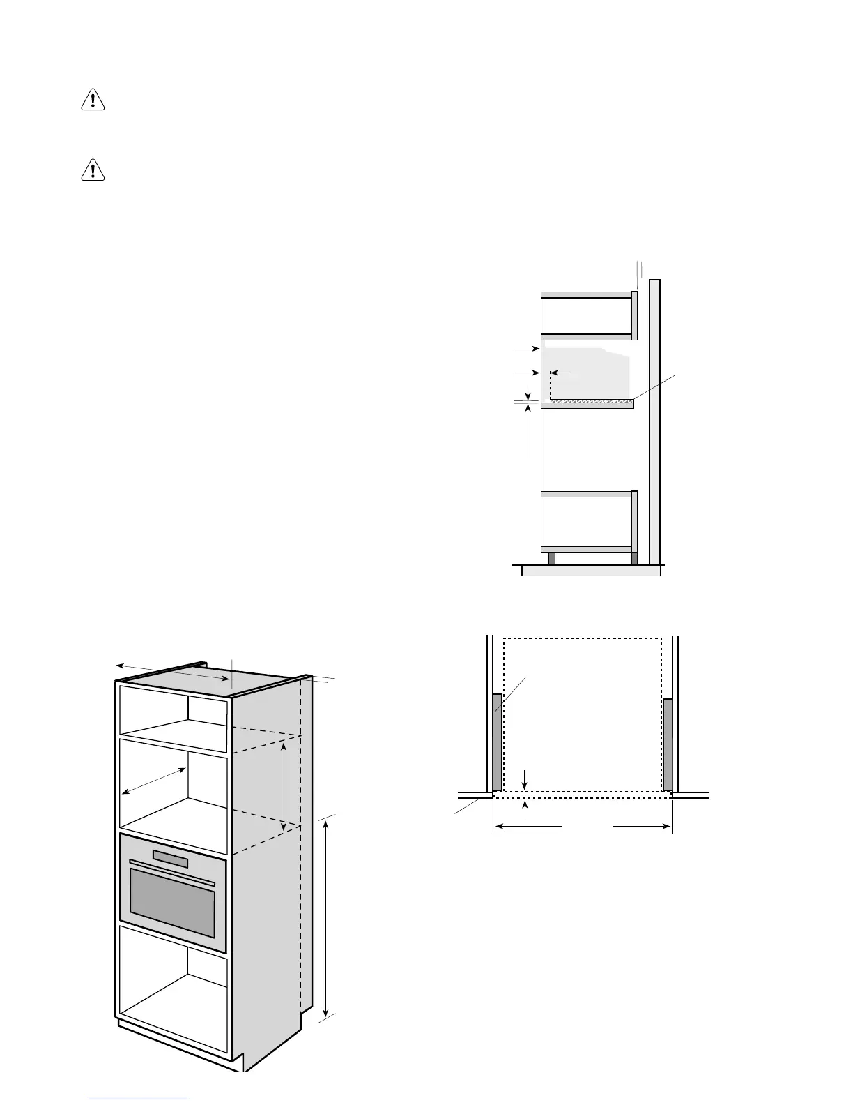 • The fitted cabinet must not have a back wall behind