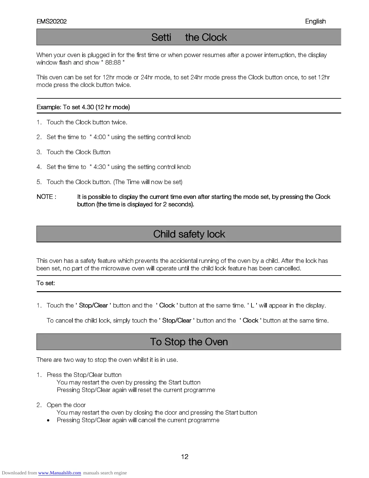 There ar e two w ay to stop the oven whilst it is in u se.