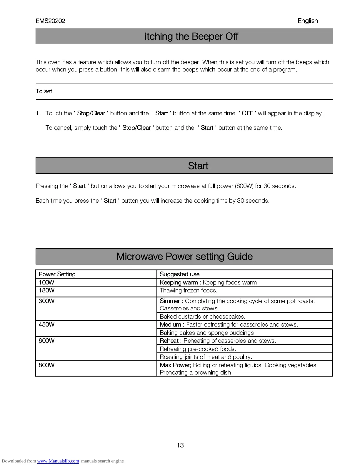 This o ven h a s a feature wh ich allows yo u to tu rn off the beepe r. When this is se t yo u will tu rn o ff the beeps which