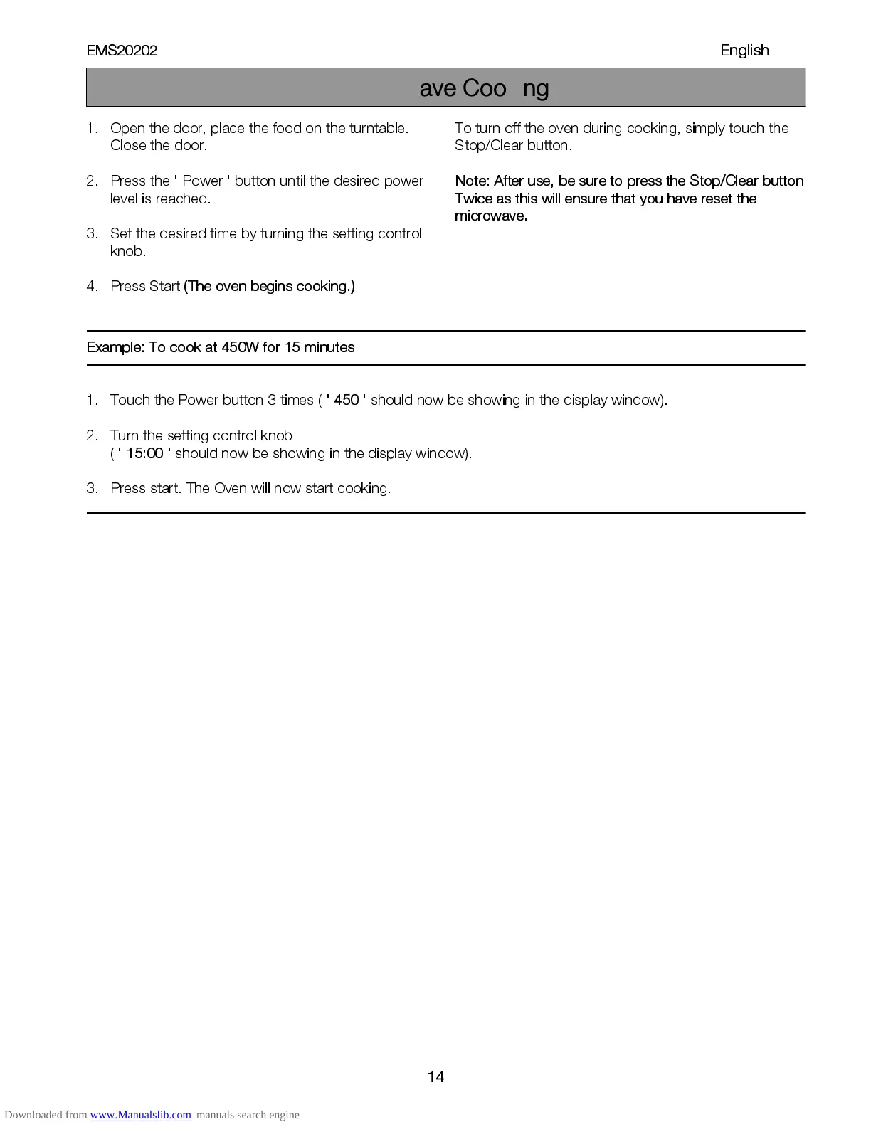 Example: To coo k at 450W for 15 minutes