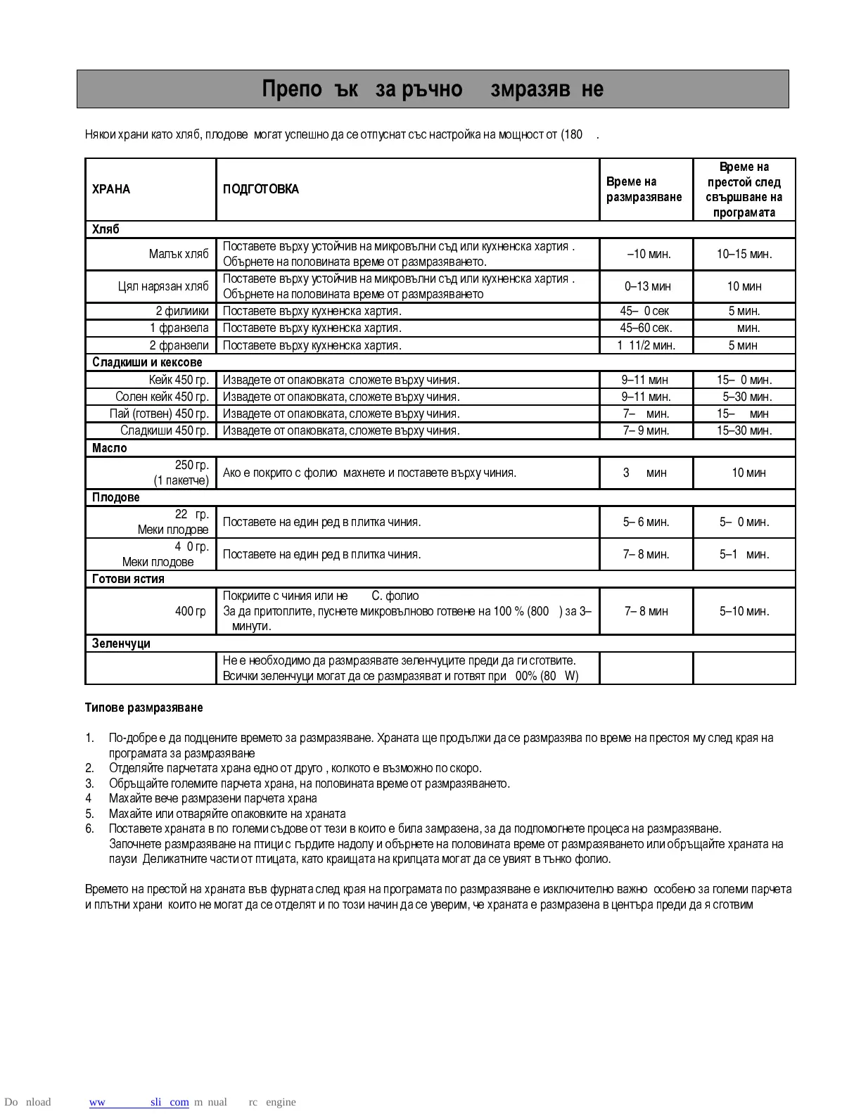 Препоръки за ръчно размразяване