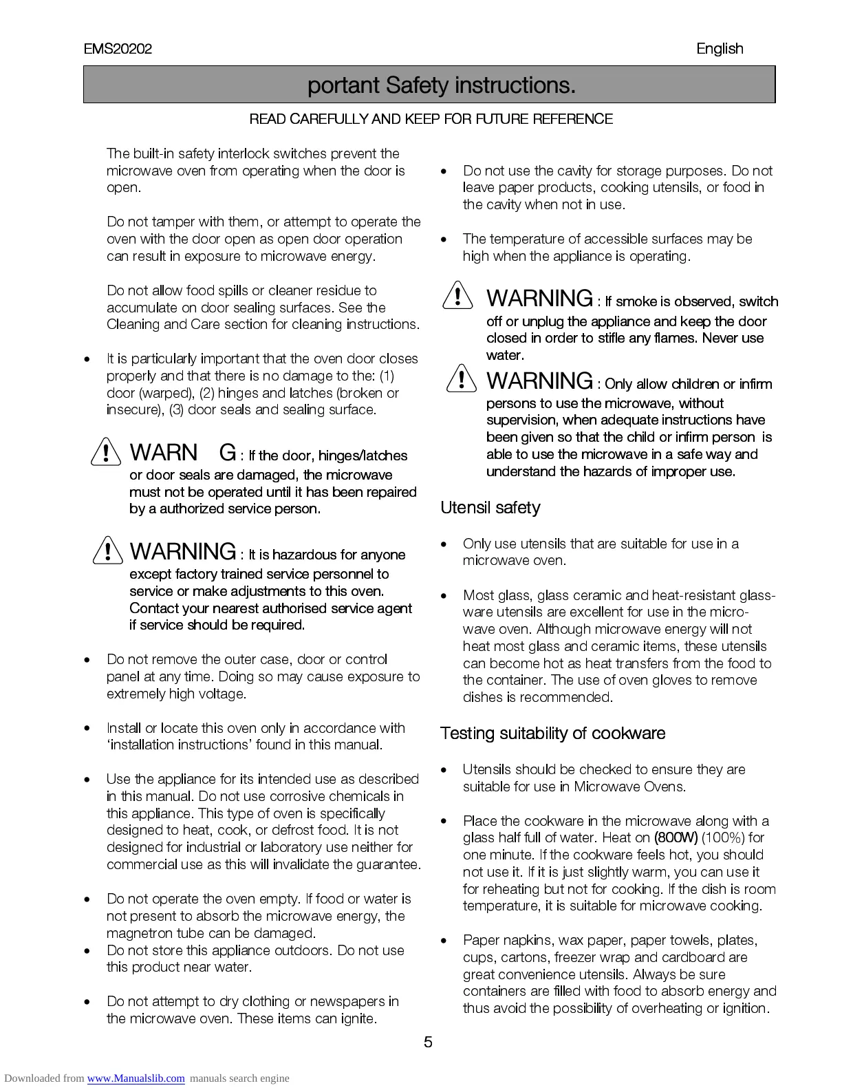 Only use utensils that are suitable for use in a