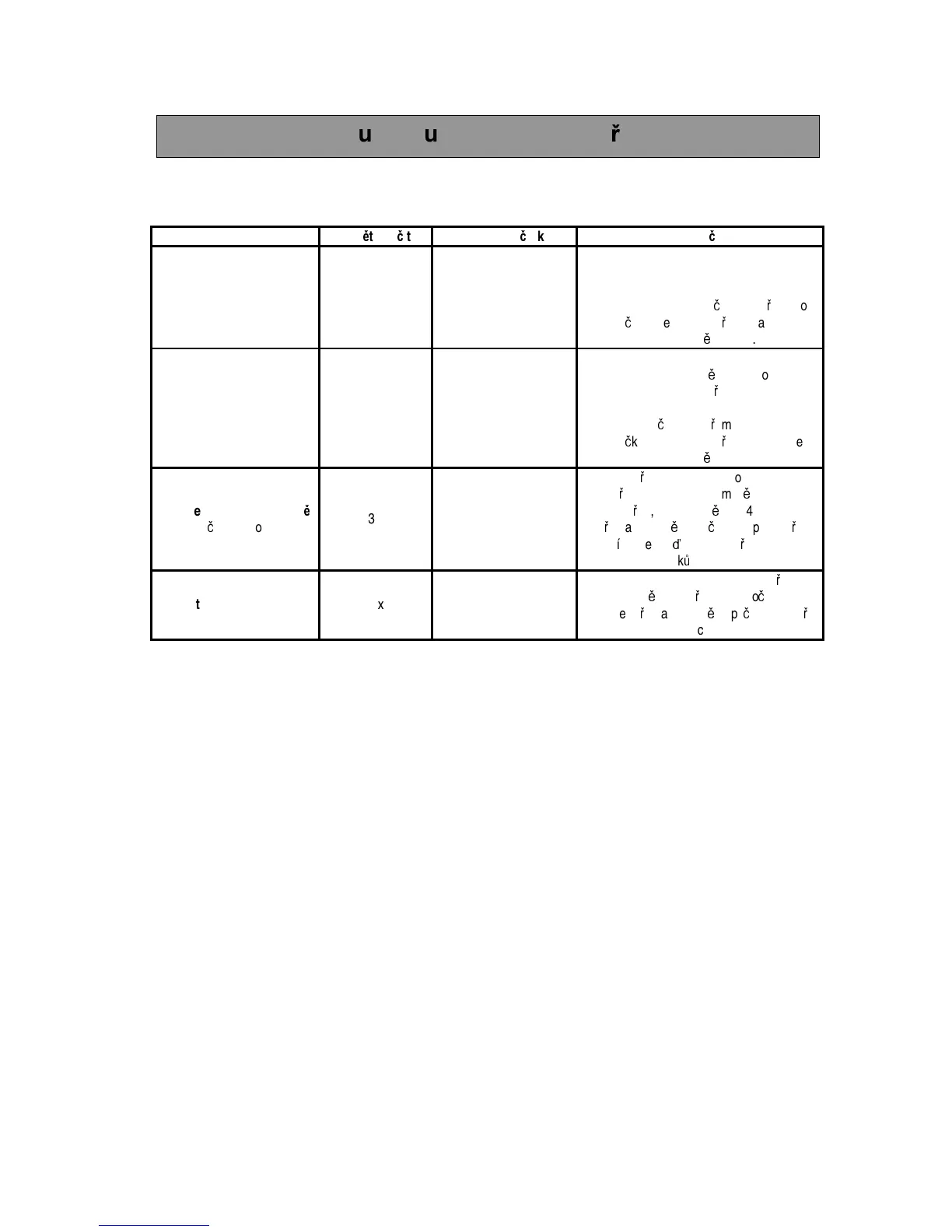 Tabulka automatického oh