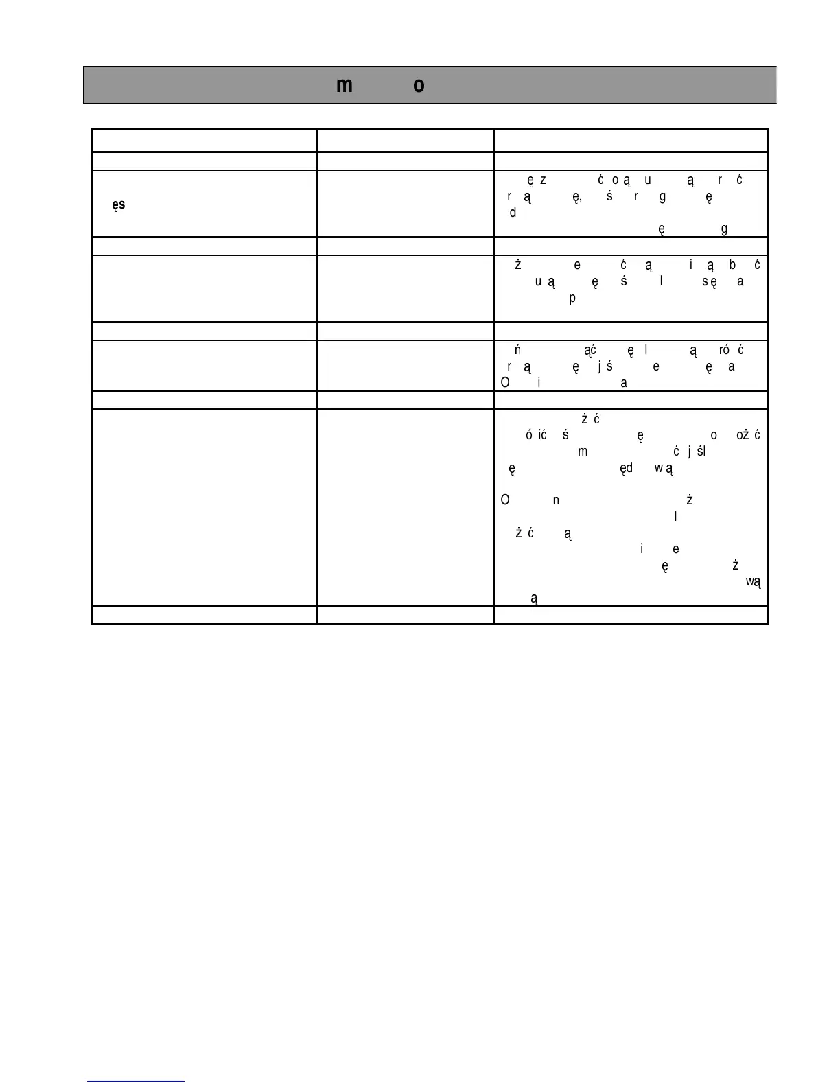 Tabela programów automatycznego rozmrażania