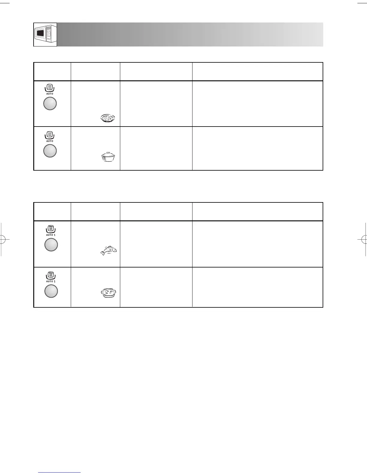 AUTO COOK & DEFROST CHARTS