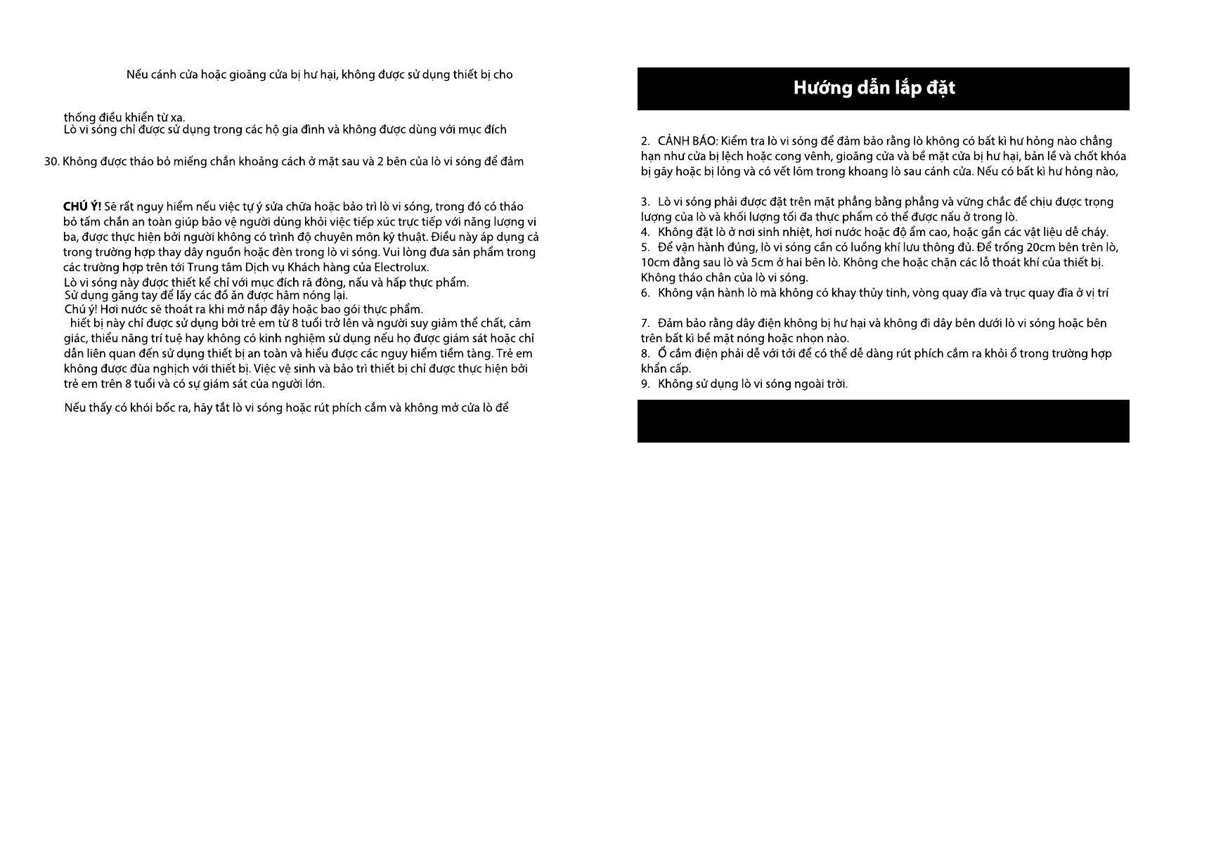 bảo khoảng cách tối thiểu giữa lò vi sóng và tường, tạo điều kiện cho việc thông gió.