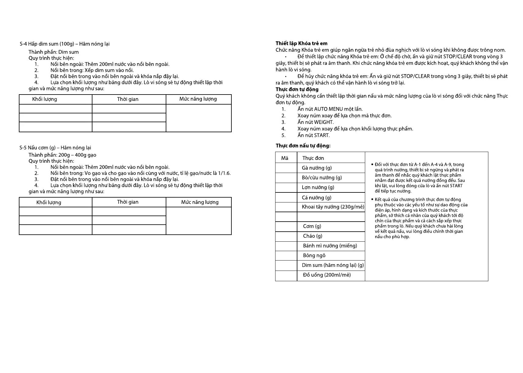 Lưu ý: 1. Chức năng hấp chỉ có thể được sử dụng với nồi hấp đi kèm.