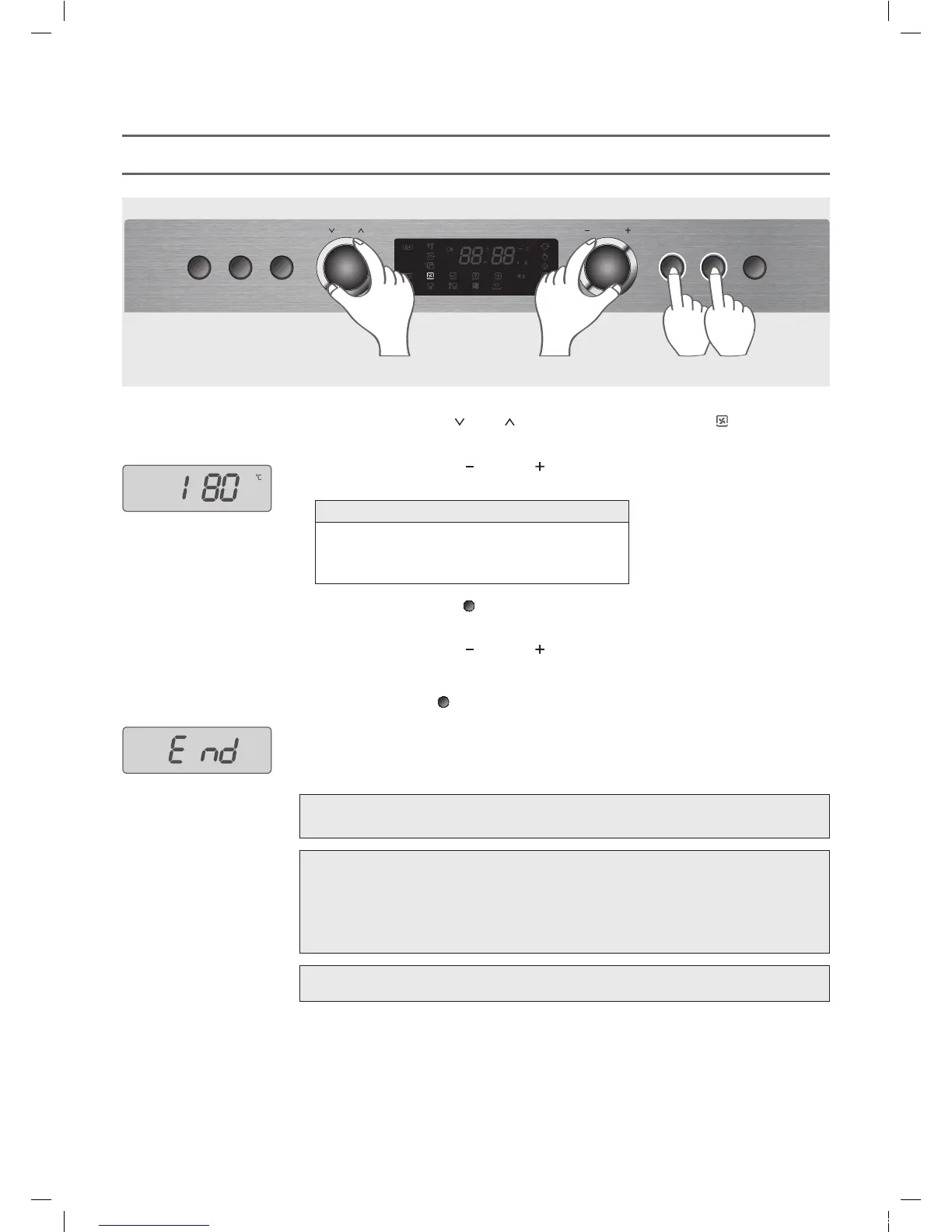 6. The display shows “End” and beep sounds when the cooking is completed.
