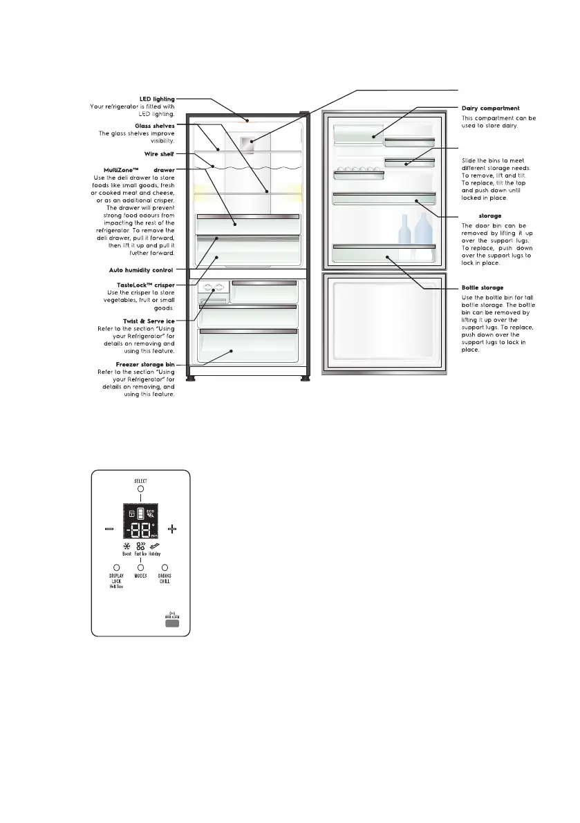 refrigerator and freezer compartments as well as setting the
