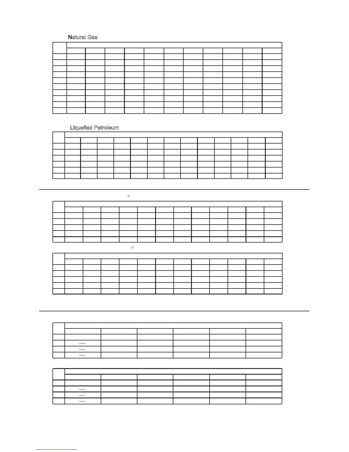 ** For reference only. Please consult gas pipe manufacturer for actual pipe capacities.