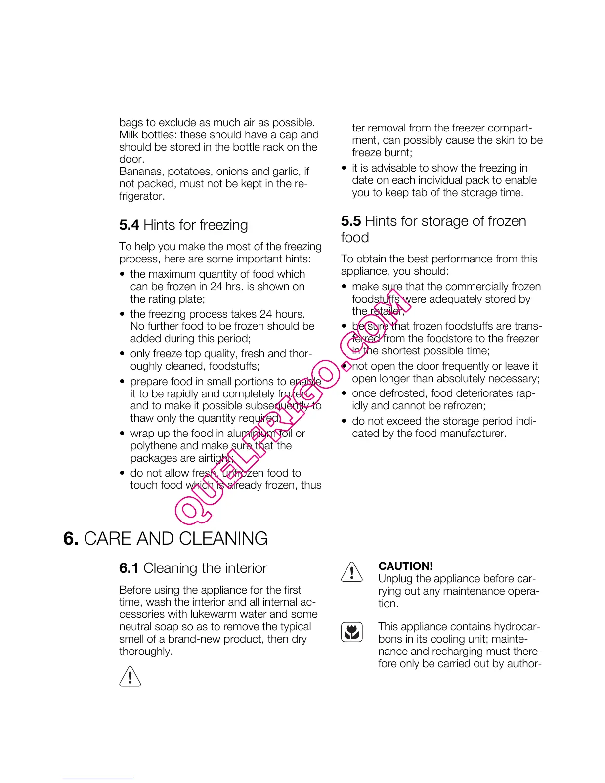 5.5 Hints for storage of frozen