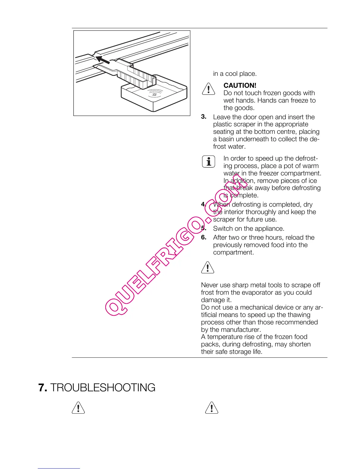 To remove the frost, follow the instruc-